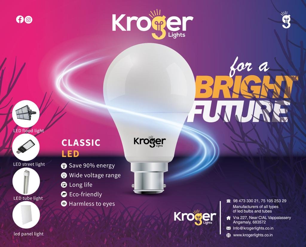 Kroger fan was established with a vision to create different types of fans that brightens the future of Indian consumers. We are situated in small town called Angamaly in Kerala. Kroger lights ventured into a most energy efficient led products with a smart design that brightens your home and commercial space. Our philosophy as a led bulbs makers, is to put in all our efforts into latest technology and finer details. So right from market research, to the final product , we make sure that ample time is spent on every process in between, and we believe that this is the only way to make the most perfect product's